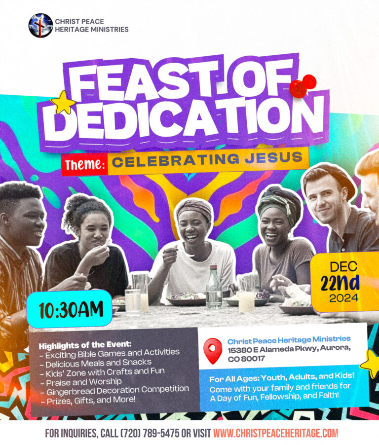 Welcome to Christ Peace Heritage Ministries, a welcoming Christian Fellowship located in the heart of Aurora, Colorado. Our ministry is centered around the message of peace, the teachings of Jesus Christ, and the goal of building a diverse and united body of believers as described in Revelation 7:9.